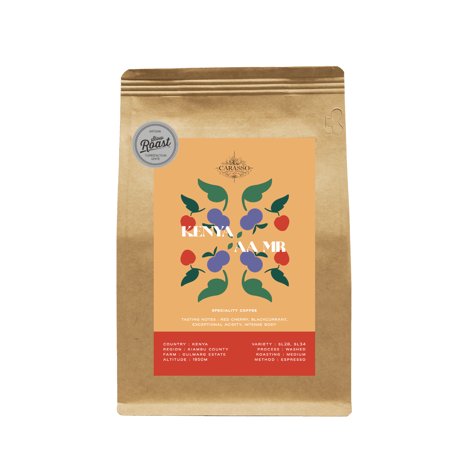 Le comté de Kiambu est situé juste à l’extérieur de Nairobi. La région possède une longue histoire de production de café et est célèbre pour ses vastes plantations. Cette région réunit tous les atouts pour l’épanouissement de l’Arabica : sa proximité avec l’équateur, ses sols semi-volcaniques riches en fer, son ensoleillement abondant et ses altitudes élevées, jusqu’à 2 000 m d’altitude, sont remarquables. Les températures nocturnes fraîches de ces hautes terres fertiles permettent aux cerises de mûrir lentement, développant ainsi l’acidité et la complexité de la tasse finale. Pour ce lot, une fois dépulpées les cerises sont plongées dans cuves d’eau pour une fermentation de 12 à 48h. Elles sont ensuite lavées puis séchées au soleil durant 2 à 3 semaines. Notre torréfaction moyenne révèle des arômes de cerise, cassis, avec une acidité exceptionnelle et un corps intense.